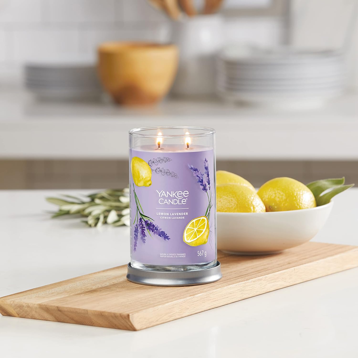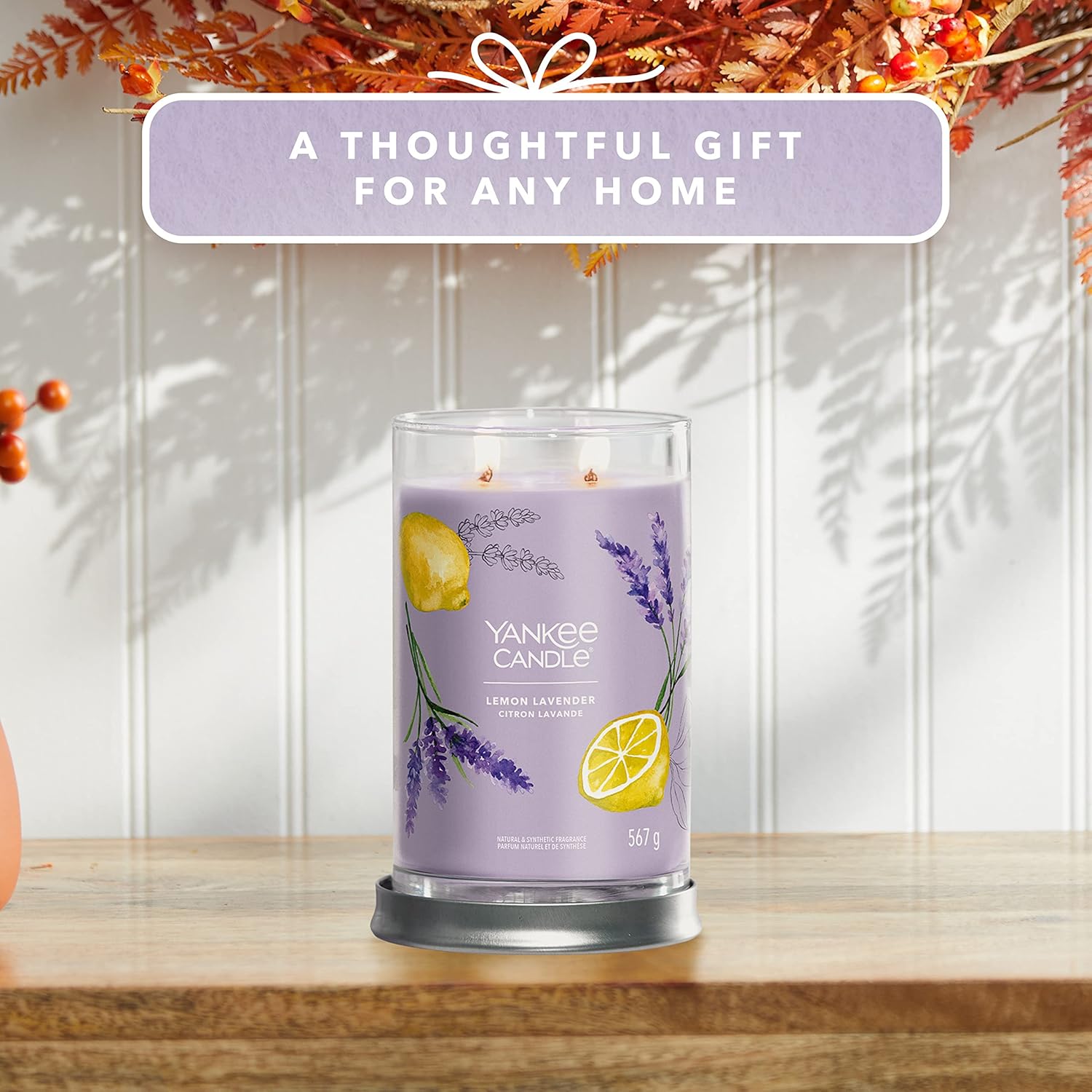 Experience the Yankee Candle® brand, totally reimagined. Our Tumbler shape features a brushed tin lid that fits neatly under the base to serve as a candle coaster.