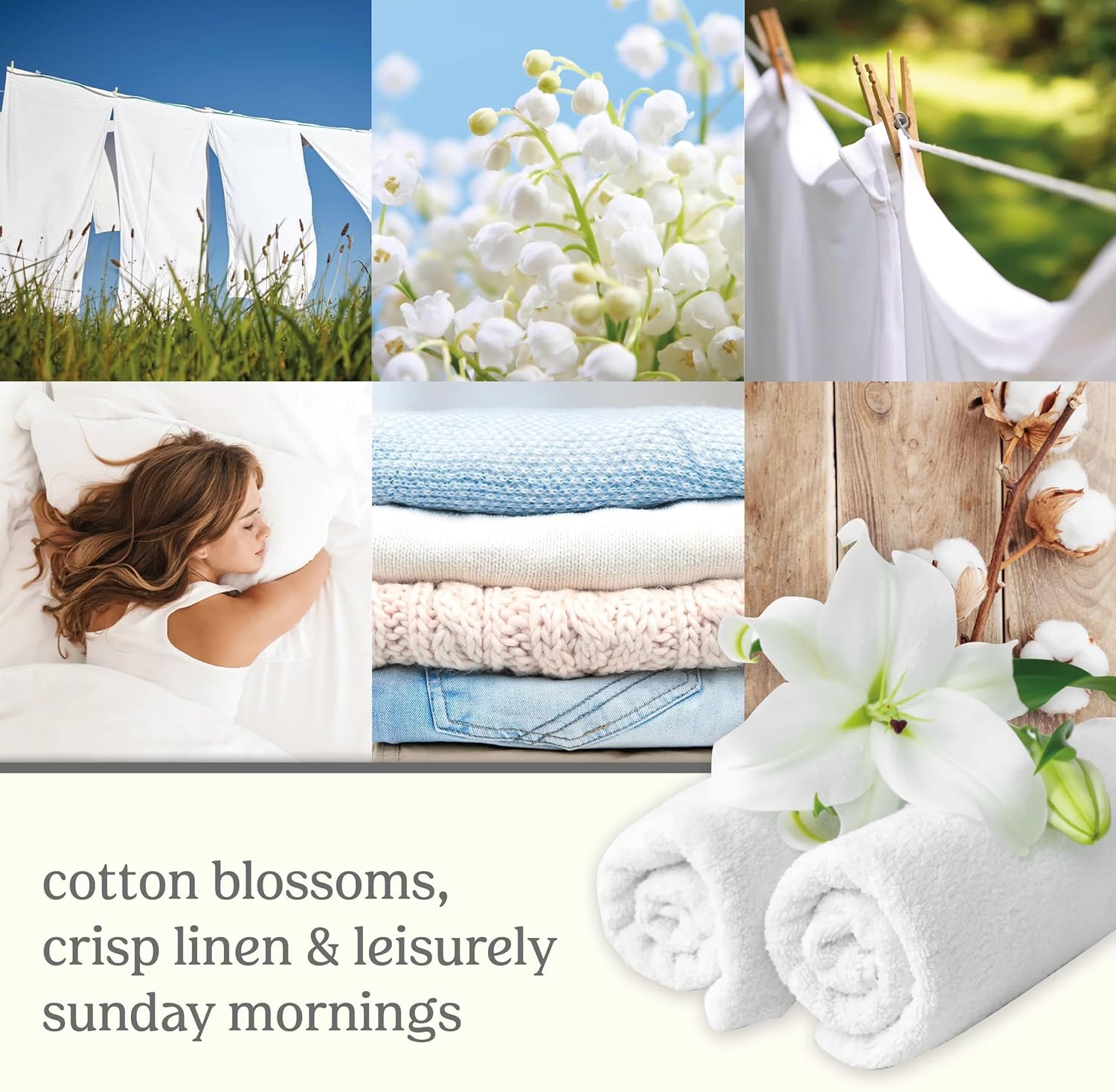 A fragrance as fresh as sun-dried cotton sheets blowing in the wind, enhanced by a hint of white flowers and lemon.