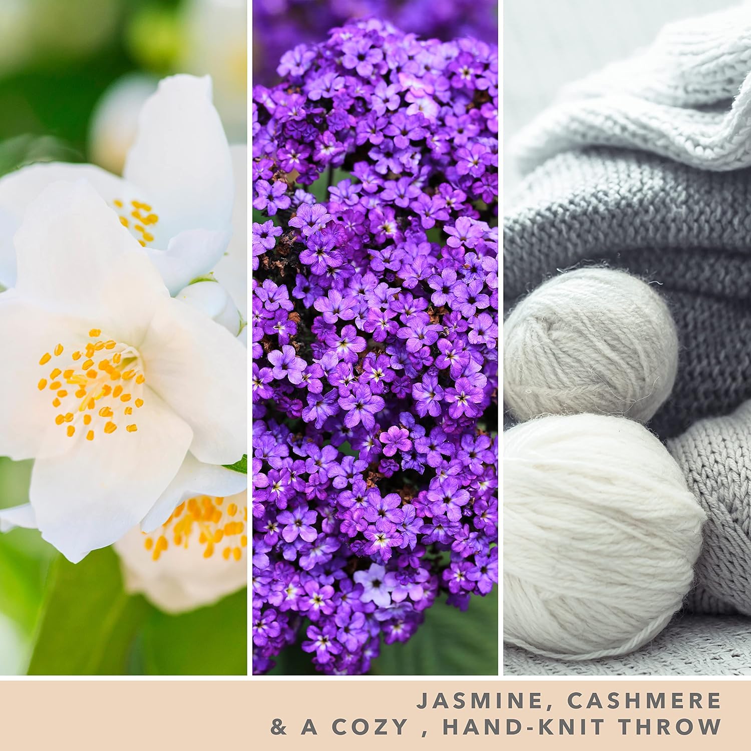Wrap yourself up in a cosy hand-knit throw and relax surrounded by the scents of white amber, jasmine and cashmere.