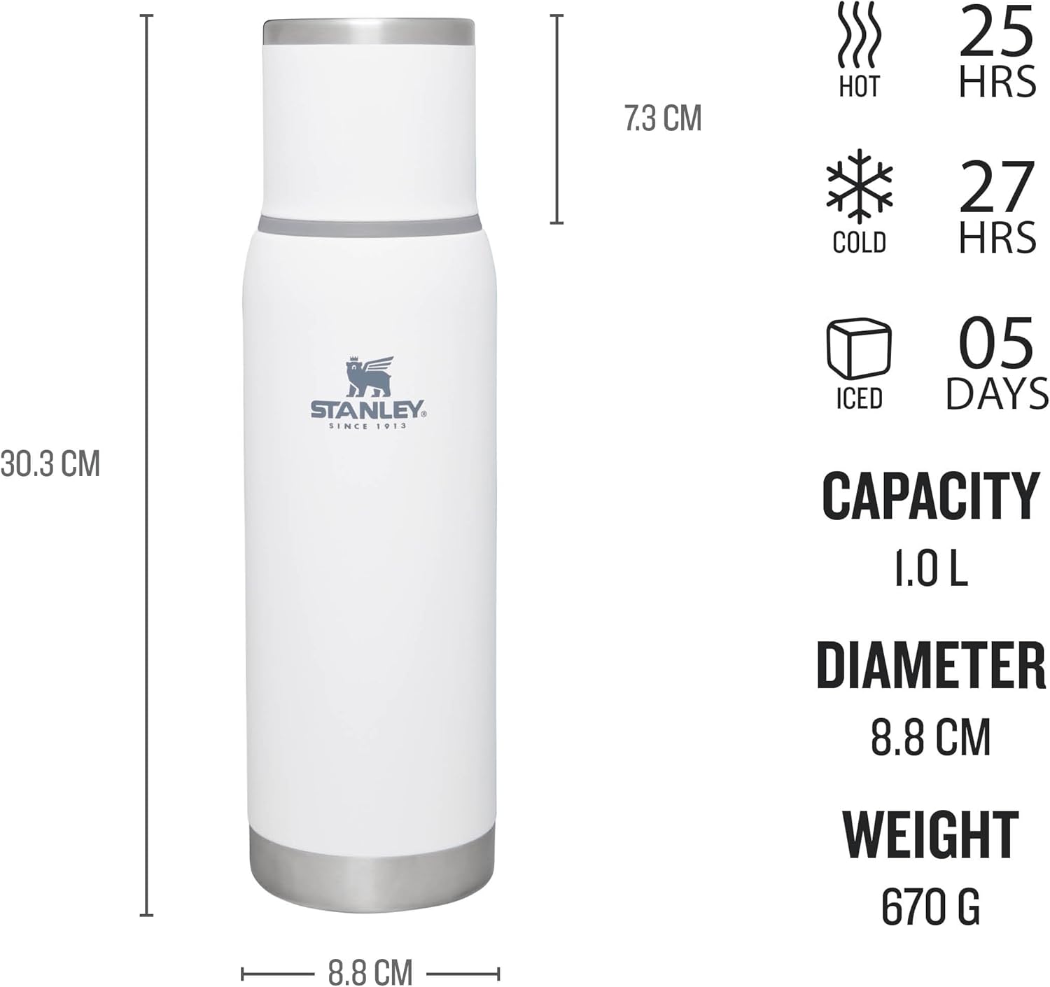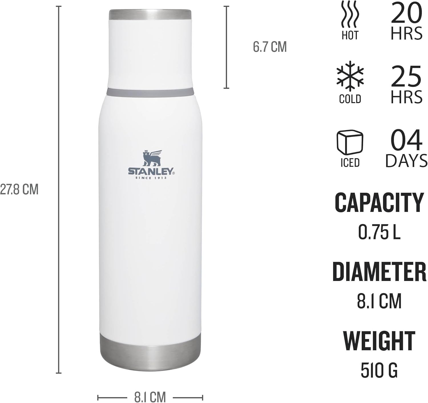 The Adventure To-Go Bottle is modern in design and enduring in performance. Insulated and leakproof, these new essentials should stay by your side day in and day out. Made for work days, vacation days, and every day- this next-generation is lighter, slimmer and sleeker than ever before. The to-go bottle features a wide opening for easy cleaning, perfect for the busy commuter. Keeping your favourite drinks hot for 20 hours or cold for 25 hours with Stanley’s double-wall vacuum insulation. The insulated, stainless steel lid can double as a cup for on-the-go sipping. Slip this bottle in your backpack or commuter bag for piping hot tea, coffee, cool squash, or water on the way to your destination. The sleek and stylish silhouette, coupled with innovative heat retention technology, makes this your next essential.