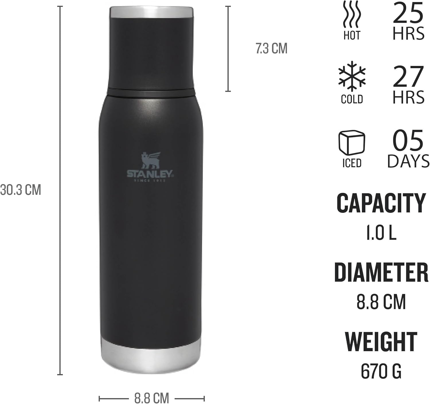 The Adventure To-Go Bottle is modern in design and enduring in performance. Insulated and leakproof, these new essentials should stay by your side day in and day out. Made for work days, vacation days, and every day- this next-generation is lighter, slimmer and sleeker than ever before. The to-go bottle features a wide opening for easy cleaning, perfect for the busy commuter. Keeping your favourite drinks hot for 20 hours or cold for 25 hours with Stanley’s double-wall vacuum insulation. The insulated, stainless steel lid can double as a cup for on-the-go sipping. Slip this bottle in your backpack or commuter bag for piping hot tea, coffee, cool squash, or water on the way to your destination. The sleek and stylish silhouette, coupled with innovative heat retention technology, makes this your next essential.