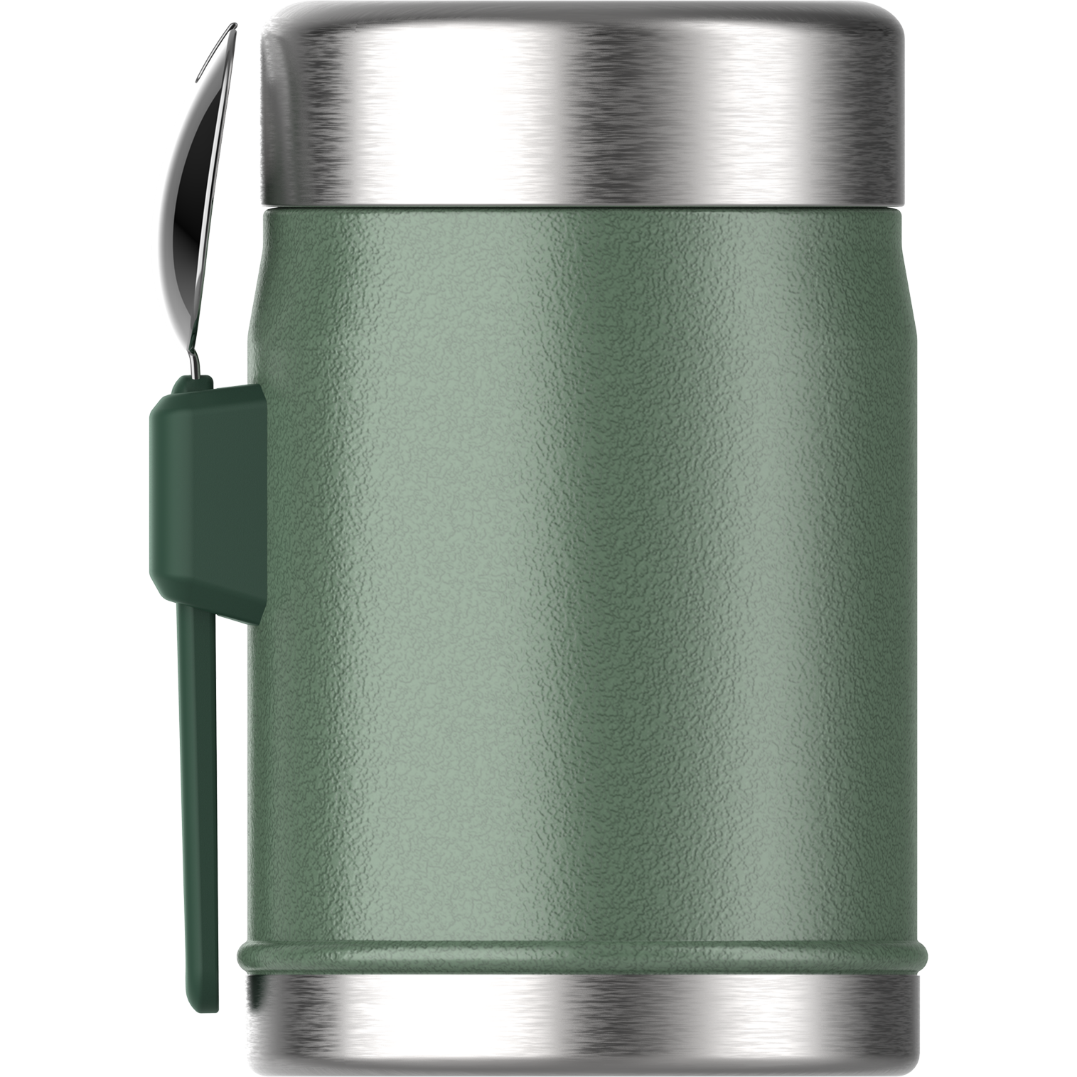 This on-the-road or at-the-campsite food jar has all the bells and whistles. Compact—but with plenty of room for your favorite hot or cold recipe. An insulated lid with a pressure-release valve for easy opening. The wide mouth opening of the vacuum insulated food jar makes filling, pouring, and cleaning easy. Every piece of this stainless steel food container is dishwasher safe, top rack only. And last but not least, a stainless-steel spork that fits securely into the attached bracket on the side. Bon appétit!