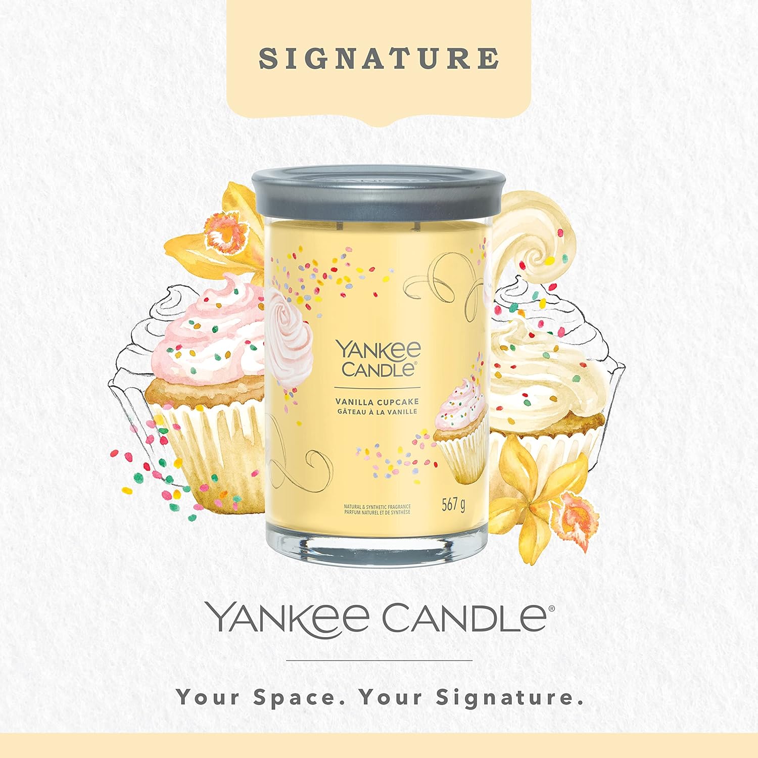 Experience the Yankee Candle® brand, totally reimagined. Our Tumbler shape features a brushed tin lid that fits neatly under the base to serve as a candle coaster.